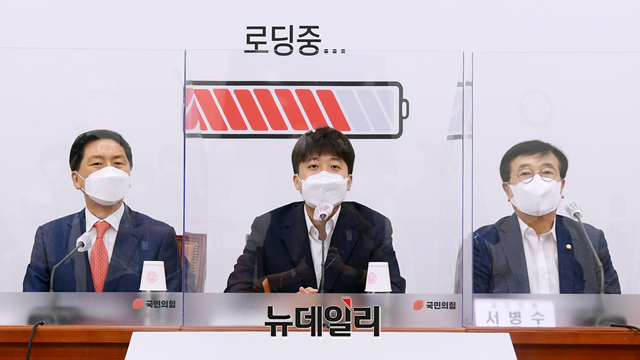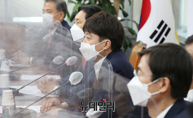 이준석 국민의힘 대표가 21일 오전 국회에서 열린 중진의원 연석회의에서 모두발언을 하고 있다. (사진=공동취재단)