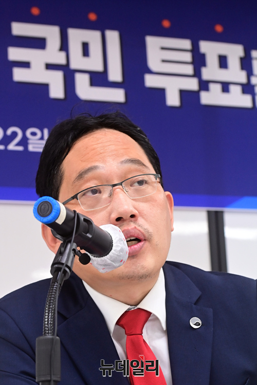 대선 출마를 선언한 최대집 전 의사협회장이 22일 오전 서울 중구 상연재에서 현재 코로나19 대응 전략에 대해 국민투표 부의를 제안하는 기자회견을 갖고 있다.최 전 회장은 "현 정부의 거리두기 단계의 강화와 완화 정책의 근본적 전환을 주장했지만 현재 방역 대응을 보면 근본적 전환을 결단할 생각이 없어 보인다"며 "국무총리, 복지부, 질병관리청, 대한의사협회가 협의해 국민투표 초안을 준비하고, 토론회와 설명회를 거쳐 국민투표를 실시하자"고 말했다.국민의 하루하루 일상과 건강, 생명에 미치는 영향이 매우 심대해 더 이상 미룰 수 없는 중대한 국가 정책이라며 제안 이유를 설명했다.