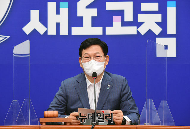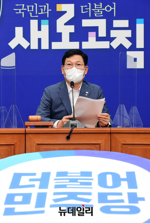 송영길 더불어민주당 대표가 23일 오전 국회에서 열린 최고위원회의에서 모두발언을 하고 있다. (사진=공동취재단)