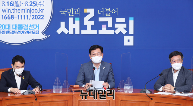 송영길 더불어민주당 대표가 26일 오전 국회에서 열린 최고위원회의에서 개의를 선언하며 의사봉을 두드리고 있다. (사진=공동취재단)