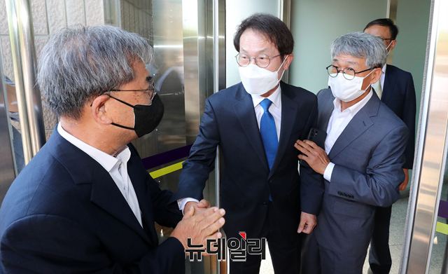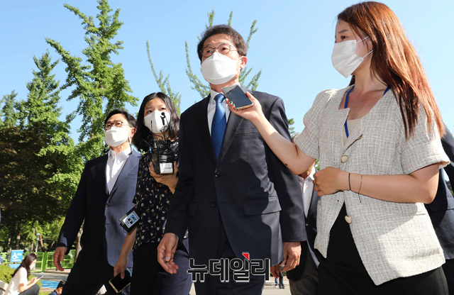 고위공직자범죄수사처(공수처) '1호 수사' 대상이 된 조희연 서울시교육감이 27일 오전 경기 정부과천청사 공수처에 피의자 신분으로 출석하고 있다.조 교육감은 전교조 해직 교사 4명 등 5명을 특정해 특별채용을 지시한 혐의를 받고 있다.이날 조 교육감은 "감사원이 절차상 문제로 주의조치를 내리고서도 왜 고발을 했는지 지금도 납득하지 못한다"며 "공수처가 수사를 개시한 것에 대해서도 의문을 갖고 있다"고 반발했다. 이어 "공수처가 제게 많은 의문과 오해가 있을 것"이라며 "수사를 통해서 성실히 소명하겠다"고 전했다. (과천=강민석 기자)