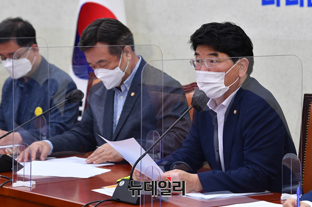 박완주 더불어민주당 정책위의장이 27일 오전 국회에서 열린 원내대책회의에 참석해 모두발언을 하고 있다. (사진=공동취재단)