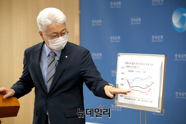 박양수 한국은행 경제통계국장이 27일 오전 서울 중구 한국은행에서 2021년 2/4분기 실질 국내총생산의 주요 특징을 설명하고 있다. (사진=한국은행)