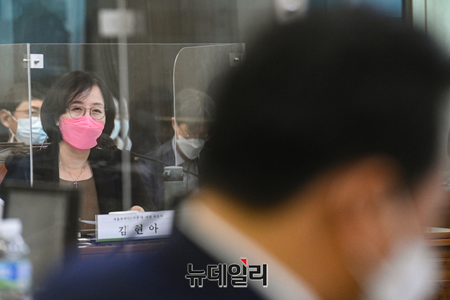 김현아 서울주택도시공사(SH) 사장 후보자가 27일 오후 서울 중구 서울시의회 의원회관에서 열린 인사청문회를 참석해 의원들의 질의에 답변하고 있다.