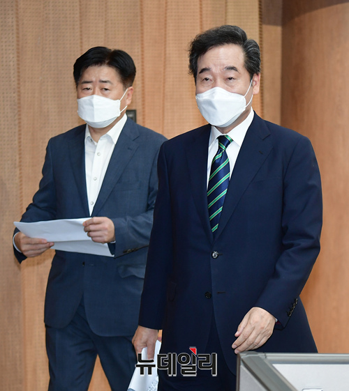더불어민주당 대선 예비후보인 이낙연 전 대표가 27일 오후 국회 소통관에서 주거 정책 관련 기자회견을 마치고 떠나고 있다.