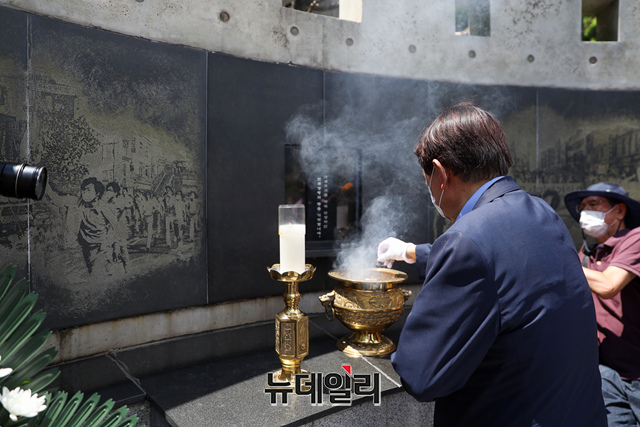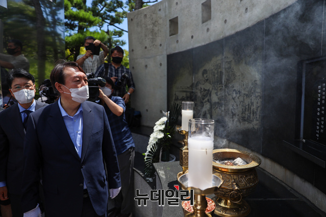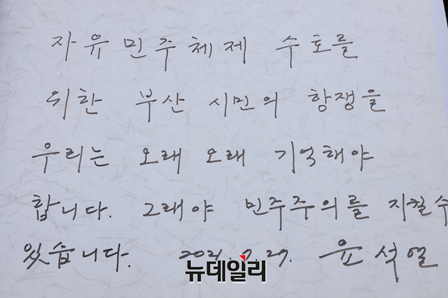 [포토] 부산 민주공원 추념의 장 찾은 윤석열 전 총장
