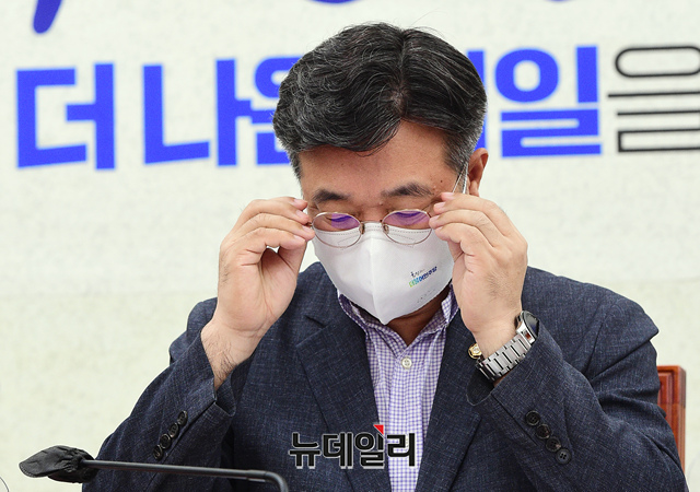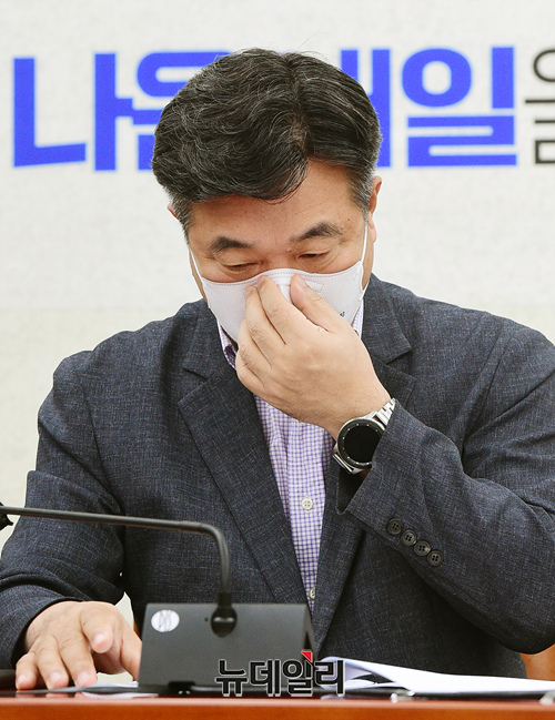 윤호중 더불어민주당 원내대표가 29일 오전 국회에서 열린 정책조정회의에서 생각에 잠겨 있다. (사진=공동취재단)