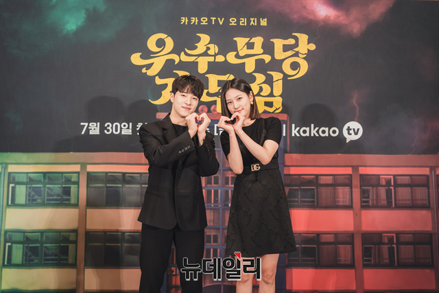 '우수무당 가두심'은 원치 않는 운명을 타고난 소녀 무당 가두심과 원치 않게 귀신을 보게 된 엄친아 '우수'! 위기의 십팔세를 무사히 넘기기 위해 함께 학교의 미스터리를 해결해가는 고교 퇴마로그를 다룬 웹드라마다. 30일 밤 8시 첫 방송. (사진=카카오TV)