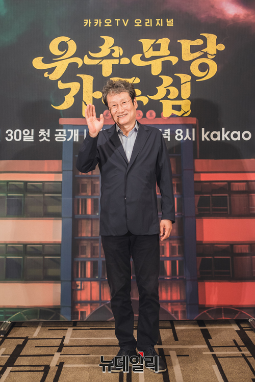 배우 문성근이 29일 오후 온라인으로 진행된 카카오TV 첫 판타지 드라마 '우수무당 가두심(연출 박호진, 송제영)' 제작발표회에서 포토타임을 갖고 있다.