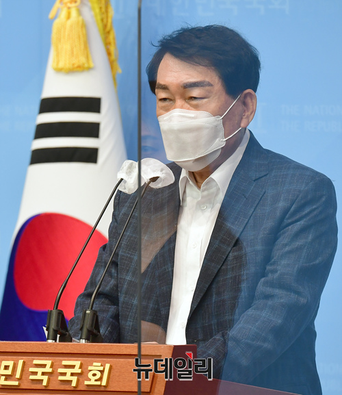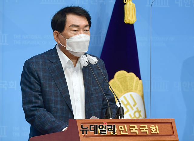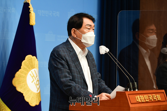 안상수 전 인천시장이 30일 국회 소통관에서 '국가 컨트롤 타워 부재 국민 대재앙의 시대 끝내야 한다'며 기자회견을 갖고 있다.