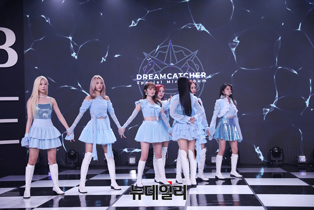 걸그룹 드림캐쳐(지유, 수아, 시연, 한동, 유현, 다미, 가현)가 30일 오후 온라인으로 진행된 스페셜 미니앨범 'Summer Holiday(서머 홀리데이)' 발매 컴백 쇼케이스에서 공연을 선보이고 있다.타이틀곡 'BEcause(비커즈)'를 비롯해 총 6곡이 수록됐다. 음원은 오후 6시에 공개. (사진=드림캐쳐컴퍼니)