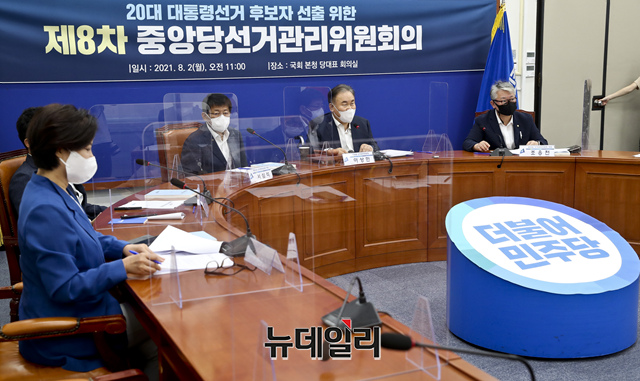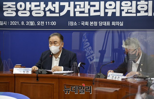 이상민 더불어민주당 선거관리위원장이 2일 오전 국회에서 열린 중앙당선거관리위원회의에서 발언하고 있다. (사진=공동취재단)