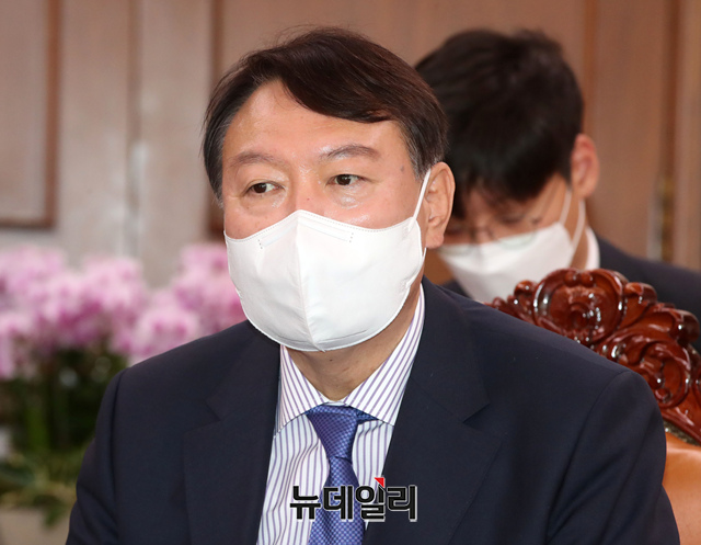 국민의힘 대선 예비후보인 윤석열 전 검찰총장이 3일 오전 국회에서 박병석 국회의장을 예방해 대화를 하고 있다. (사진=공동취재단)
