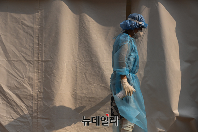 코로나19 신규 확진자가 1,202명이 나온 3일 오전 서울 마포구 마포홍익문화공원에 마련된 임시선별진료소가 비교적 한산한 모습을 보이고 있다.