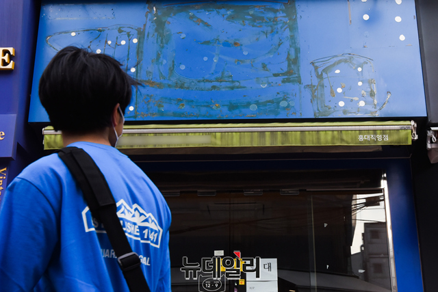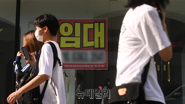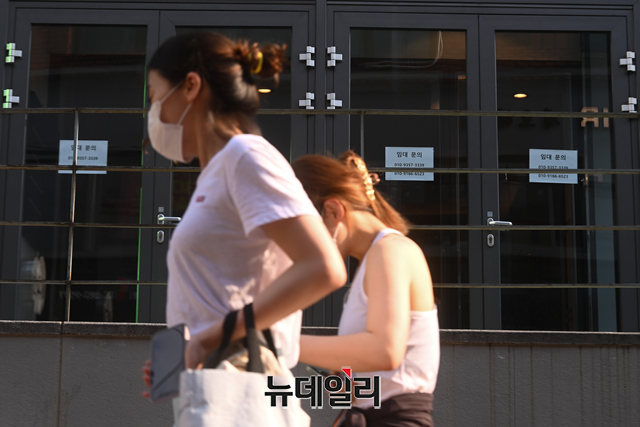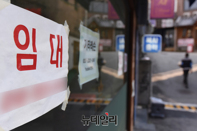 수도권 거리두기 4단계가 진행되고 있는 3일 오후 서울 마포구 홍대거리 일대에 폐업한 상점 출입구에 임대 안내문이 부착돼 있다.