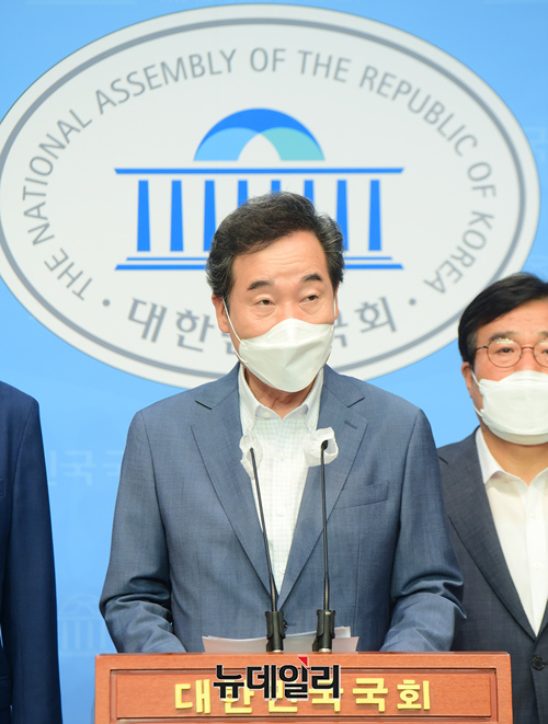 이낙연 더불어민주당 대선 예비후보가 4일 오전 국회 소통관에서 정책 공약 기자회견을 하고 있다.