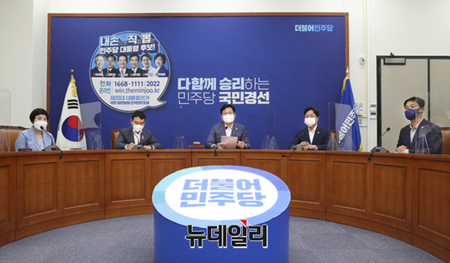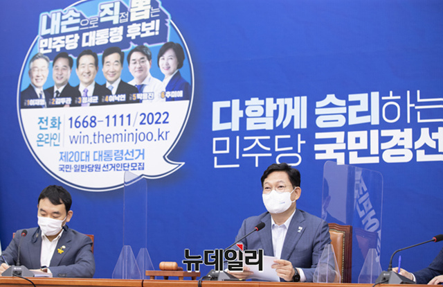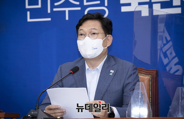 송영길 더불어민주당 대표가 4일 오전 국회에서 열린 최고위원회의에서 의사진행을 하고 있다. (사진=공동취재단)