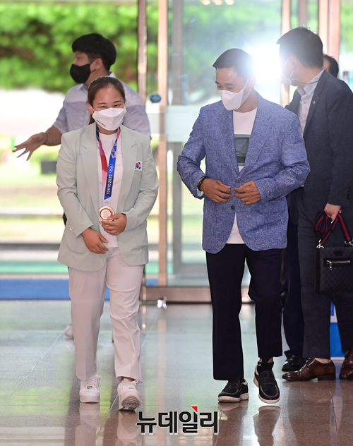 [포토] 동메달 봉납식 행사장 입장하는 여서정 선수