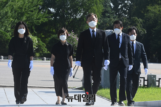 국민의힘 대선 예비후보로 첫 공식일정을 시작한 최재형 전 감사원장이 5일 오전 서울 동작구 국립현충원 학도의용군 무명용사탑을 참배하고 있다.