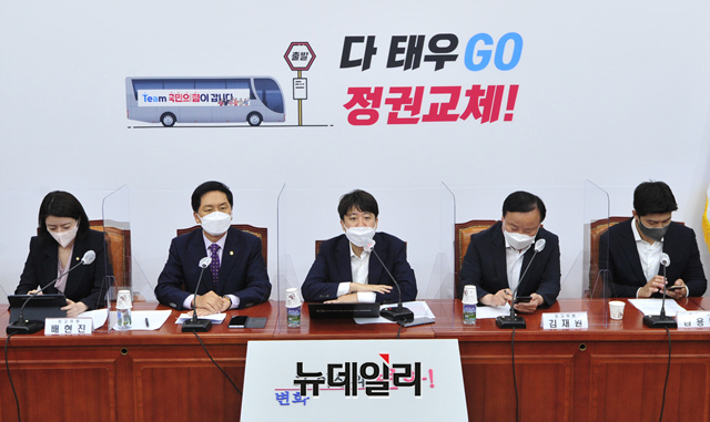 이준석 국민의힘 대표가 5일 오전 국회에서 열린 최고위원회의에서 모두발언을 하고 있다. (사진=공동취재단)