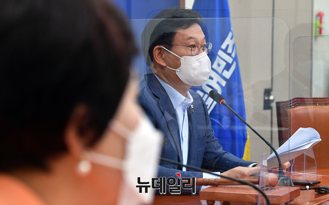 송영길 더불어민주당 대표가 6일 오전 국회에서 열린 최고위원회의에서 모두발언을 하고 있다. (사진=공동취재단)