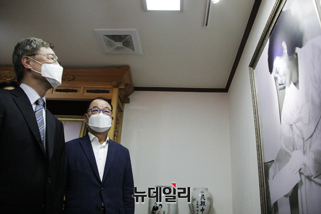 국민의힘 대선 예비후보인 최재형 전 감사원장이 6일 경북 구미시 상모동에 있는 박정희 전 대통령의 생가를 찾아 분향하고 있다.(사진=최재형캠프)