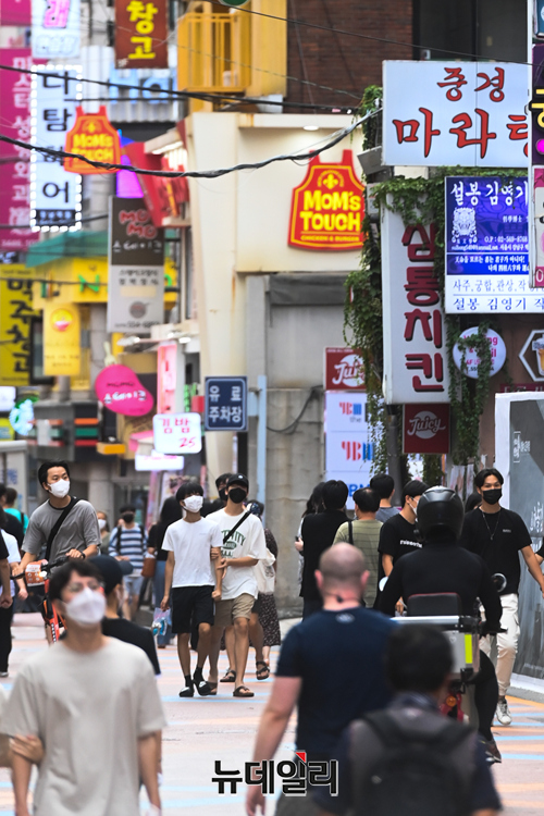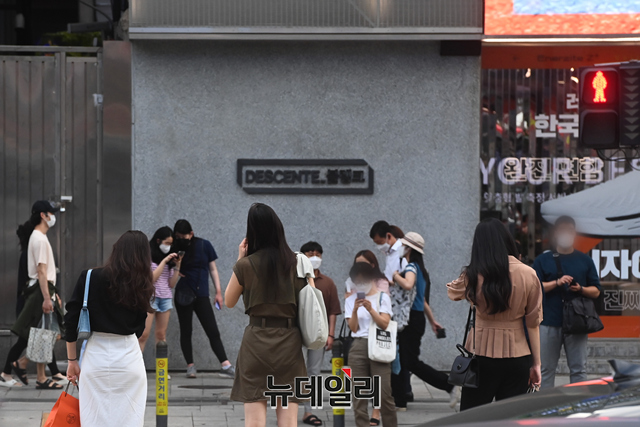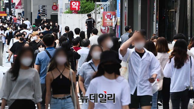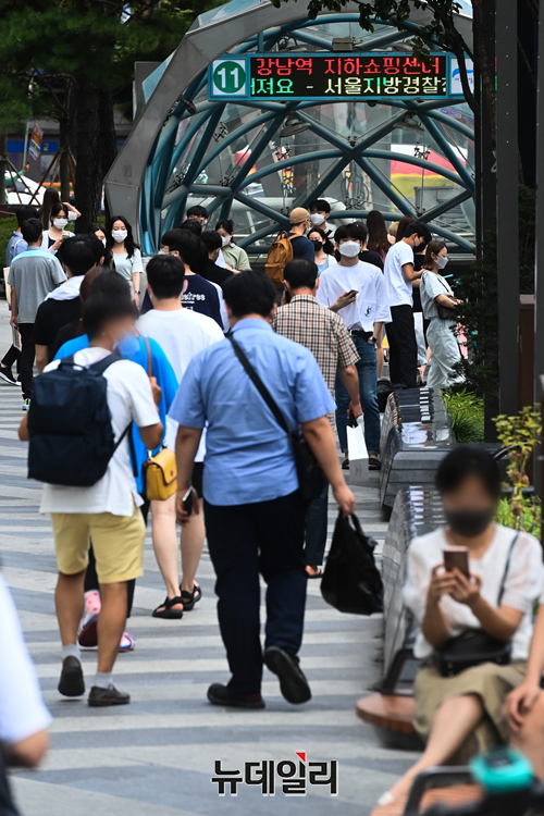 정부가 수도권 4단계, 비수도권 3단계 거리두기를 2주 연장을 한다고 발표한 6일 오후 서울 강남구 강남역 일대에서 시민들이 발걸음을 옮기고 있다.
