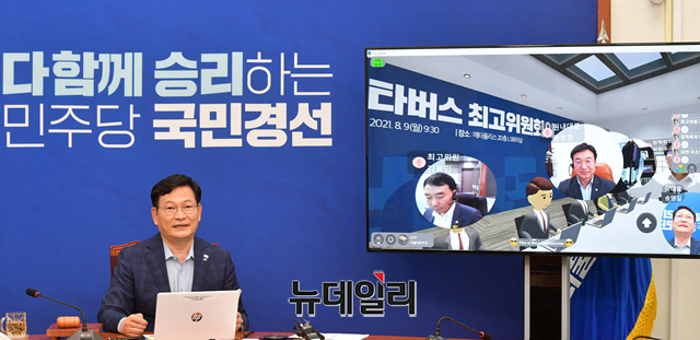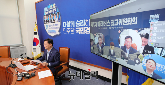 송영길 더불어민주당 대표가 9일 오전 국회에서 열린 제1차 메타버스 최고위원회의에서 발언을 하고 있다. (사진=공동취재단)