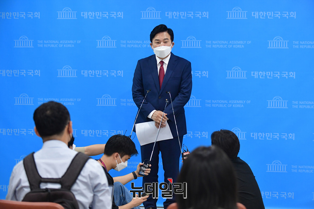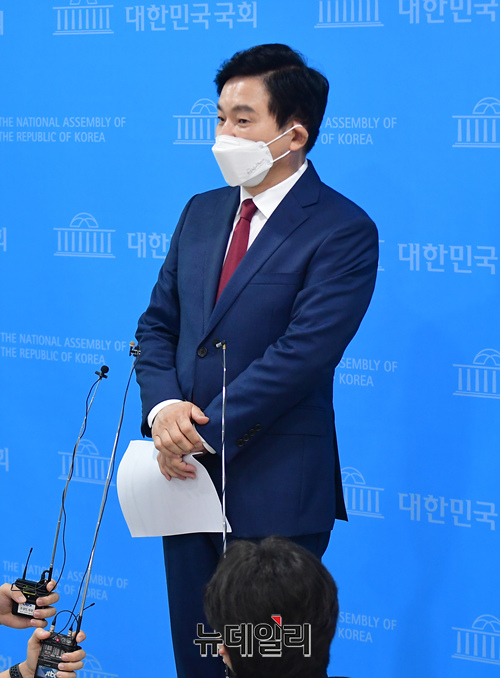 원희룡 국민의힘 대선 경선 예비후보가 9일 오전 국회 소통관에서 '교육 국가찬스' 공약 발표를 마치고 기자들의 질문에 답하고 있다.