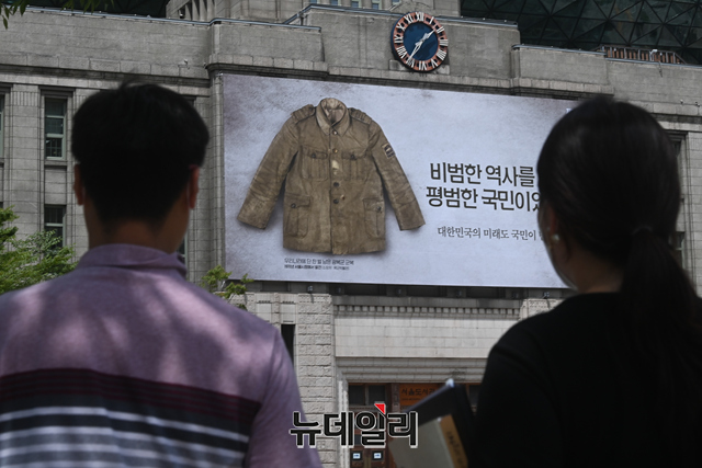 서울시가 광복절을 앞둔 9일 서울도서관 외벽 꿈새김판을 교체했다. 교체된 꿈새김판에는 광복군의 군복 사진과 함께 '비범한 역사를 만든 건 평범한 국민이었습니다 대한민국의 미래도 국민이 만들어갑니다'라는 문구가 나란히 게시됐다.서울시 관계자는 "광복군 군복은 한국에 남아 있는 유일한 광복군 군복으로 국가등록문화재 제460호로 등재됐고, 육군박물관에 소장 중인 군복은 1972년 1월 13일 서울시청 4층의 어느 금고에서 처음 발견됐다"고 설명했다. 이어 "이번 광복절을 전후해 서울꿈새김판에 총 3편의 광복절 기념 게시물을 연달아 게시할 계획이다"고 전했다.