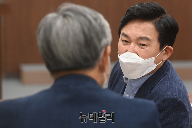 원희룡 전 제주지사가 10일 오전 서울 중구 서울시청 서소문청사 대회의실에서 열린 만민토론회에 참석해 인사말을 하고 있다.