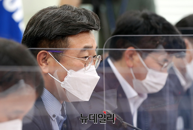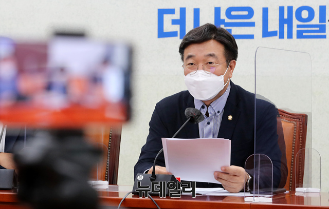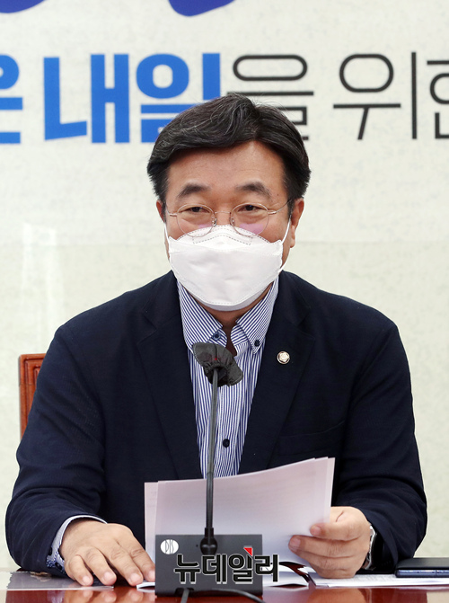 윤호중 더불어민주당 원내대표가 10일 오전 국회에서 열린 원내대책회의에서 모두발언을 하고 있다. (사진=공동취재단)