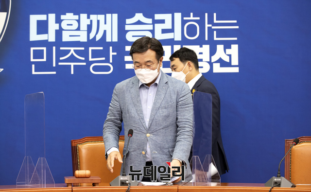 윤호중 더불어민주당 원내대표가 11일 오전 국회에서 열린 최고위원회의에 참석하고 있다. (사진=공동취재단)