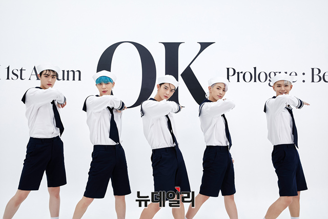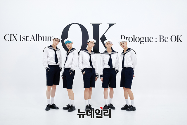 그룹 CIX(BX, 승훈, 배진영, 용희, 현석)가 17일 오후 온라인으로 진행된 첫 번째 정규 앨범 'OK Prologue : Be OK(오케이 프롤로그 : 비 오케이)' 발매 기념 쇼케이스에서 포토 타임을 갖고 있다. (사진=C9엔터테인먼트)