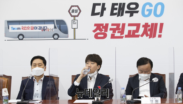 이준석 국민의힘 대표가 19일 오전 국회에서 열린 최고위원회의에 참석해 회의를 주재하고 있다. (사진=공동취재단)