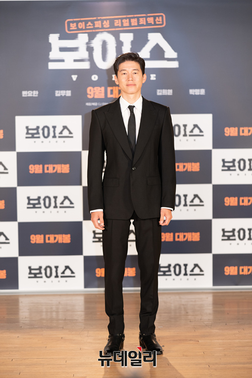 배우 김무열이 19일 오전 온라인으로 진행된 영화 '보이스' 제작보고회에 참석해 포토타임을 갖고 있다.