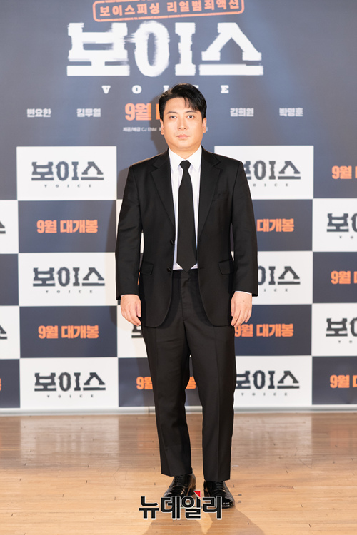배우 박명훈이 19일 오전 온라인으로 진행된 영화 '보이스' 제작보고회에 참석해 포토타임을 갖고 있다.