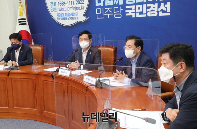 김영춘 더불어민주당 부울경 메가시티 비전위원회 위원장이 23일 오전 국회에서 열린 더불어민주당 부울경 메가시티 비전위원회 1차회의에서 발언하고 있다. (사진=공동취재단)