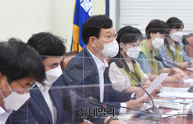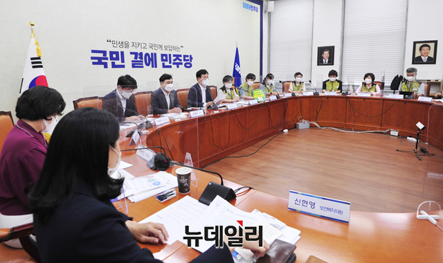 송영길 더불어민주당 대표(가운데)가 23일 오전 서울 여의도 국회에서 열린 보건의료노조 간담회에서 모두발언을 하고 있다. (사진=공동취재단)