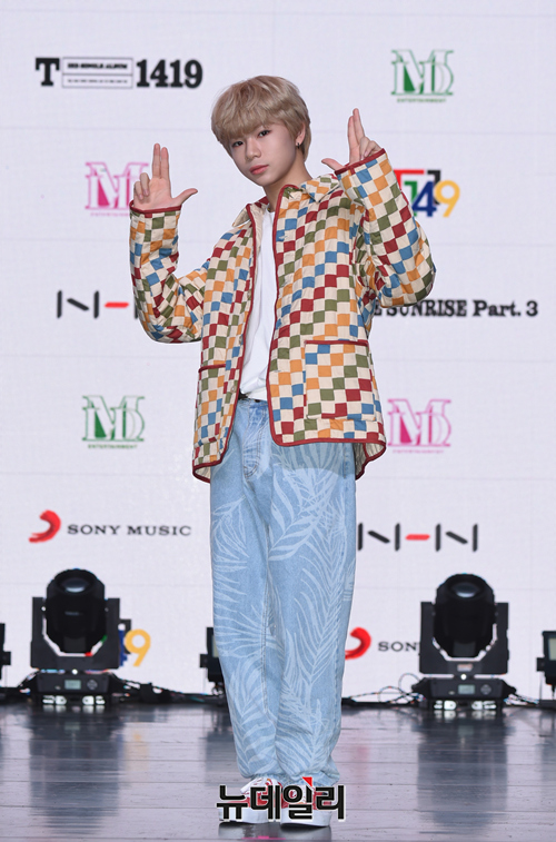 아이돌그룹 T1419(티일사일구) 키오가 23일 오후 온라인으로 진행된 싱글 3집 '비포 선라이즈 파트 3(BEFORE SUNRISE Part. 3)' 발매기념 쇼케이스에서 수로곡 무대를 선보이고 있다.타이틀곡 '플렉스(FLEX)'는 강렬한 사운드의 비트와 구성의 HIP-HOP 댄스곡으로 베토벤 비창 3악장 일부분이 EDM과 가미된 것이 특징이다. '은닉' 등 총 3곡이 수록됐다.이날 오후 6시 브이 라이브(V LIVE)와 트위터 블루룸, 오후 8시 라인(LINE) 채널을 통해 글로벌 쇼케이스를 개최한다. (사진=MLD엔터테인먼트)