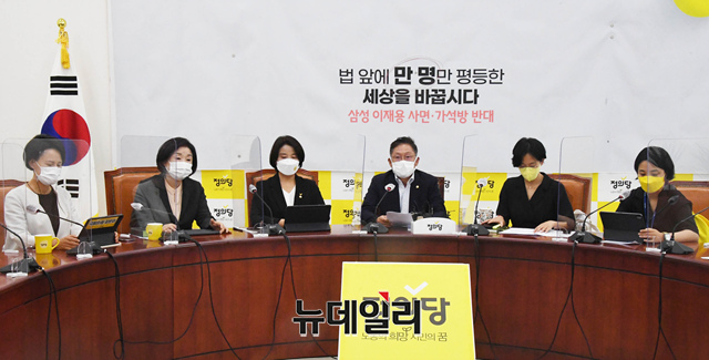 배진교 정의당 원내대표가 24일 오전 국회에서 열린 의원총회에서 모두발언을 하고 있다. (사진=공동취재단)