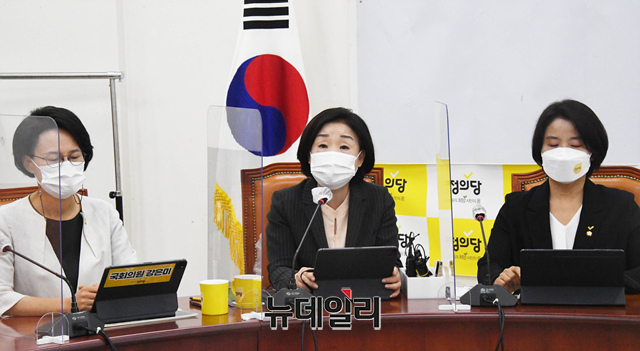 심상정 정의당 의원이 24일 오전 국회에서 열린 의원총회에서 모두발언을 하고 있다. (사진=공동취재단)