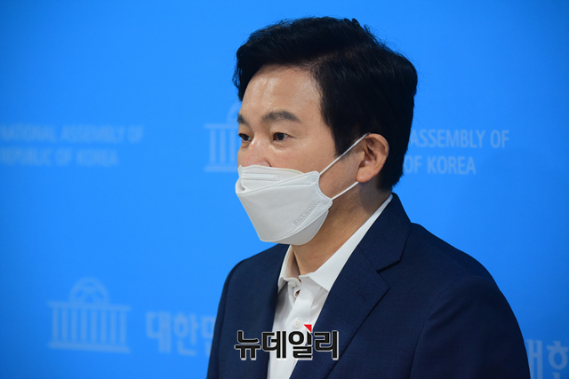 원희룡 국민의힘 대선 경선 후보가 24일 오전 국회 소통관에서 대선 공약 발표를 마치고 기자들의 질문에 답하고 있다.