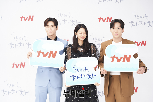 배우 김선호(왼쪽부터), 신민아, 이상이가 24일 오후 온라인으로 진행된 tvN 새 토일드라마 '갯마을 차차차(감독 유제원)' 제작발표회에서 포즈를 취하고 있다.