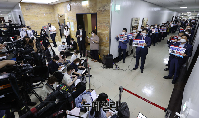 [포토] 언론중재법 강행 규탄 팻말든 국민의힘
