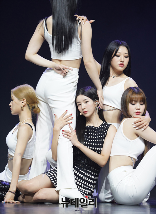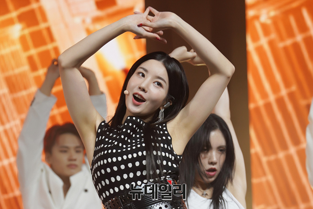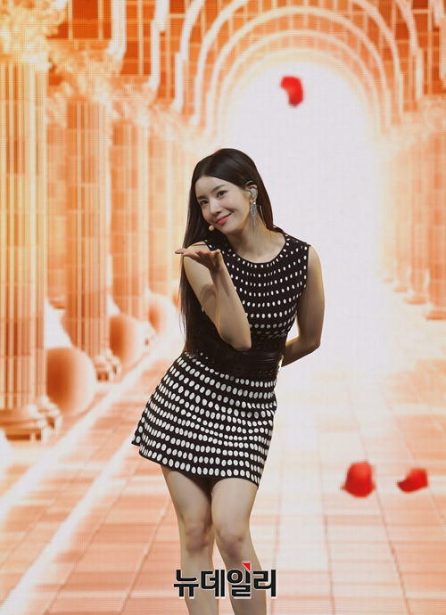걸그룹 아이즈원 멤버 권은비가 24일 오후 온라인으로 진행된 첫 번째 미니 앨범 '오픈(OPEN)' 발매 기념 쇼케이스에서 타이틀곡 무대를 선보이고 있다.