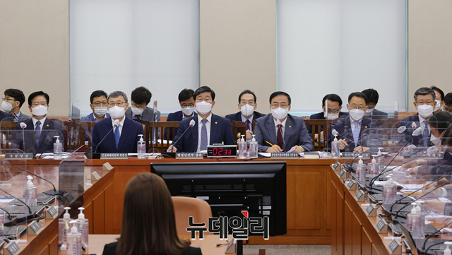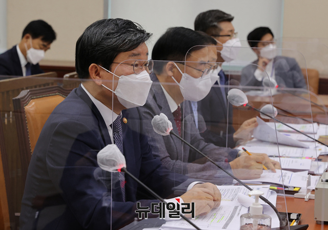 전해철 행정안전부 장관이 25일 오전 국회에서 열린 행정안전위원회 전체회의에서 의원의 질의에 답하고 있다. (사진=공동취재단)