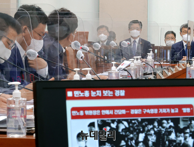 김창룡 경찰청장이 25일 오전 국회에서 열린 행정안전위원회 전체회의에서 의원의 질의에 답하고 있다. (사진=공동취재단)