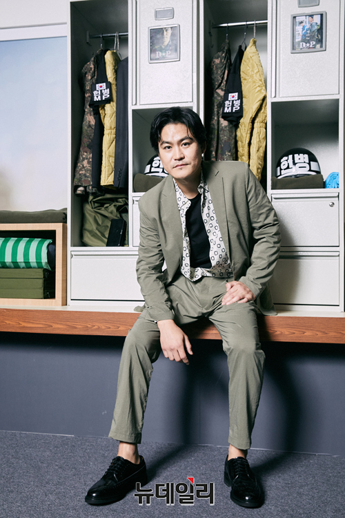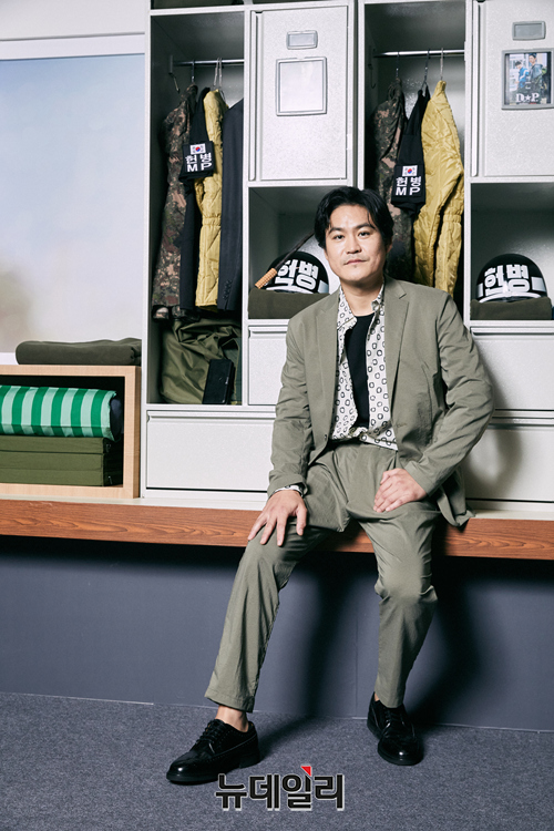 배우 김성균이 25일 오전 온라인으로 진행된 넷플릭스 시리즈 '디피(연출 한준희)' 제작발표회에서 포즈를 취하고 있다.