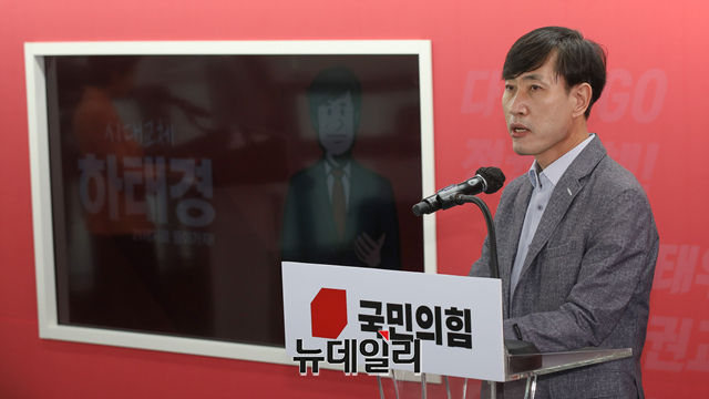 하태경 국민의힘 대선 경선 예비후보가 25일 오후 서울 여의도 중앙당사에서 열린 국민 약속 비전 발표회에서 발표를 하고 있다. (사진=공동취재단)